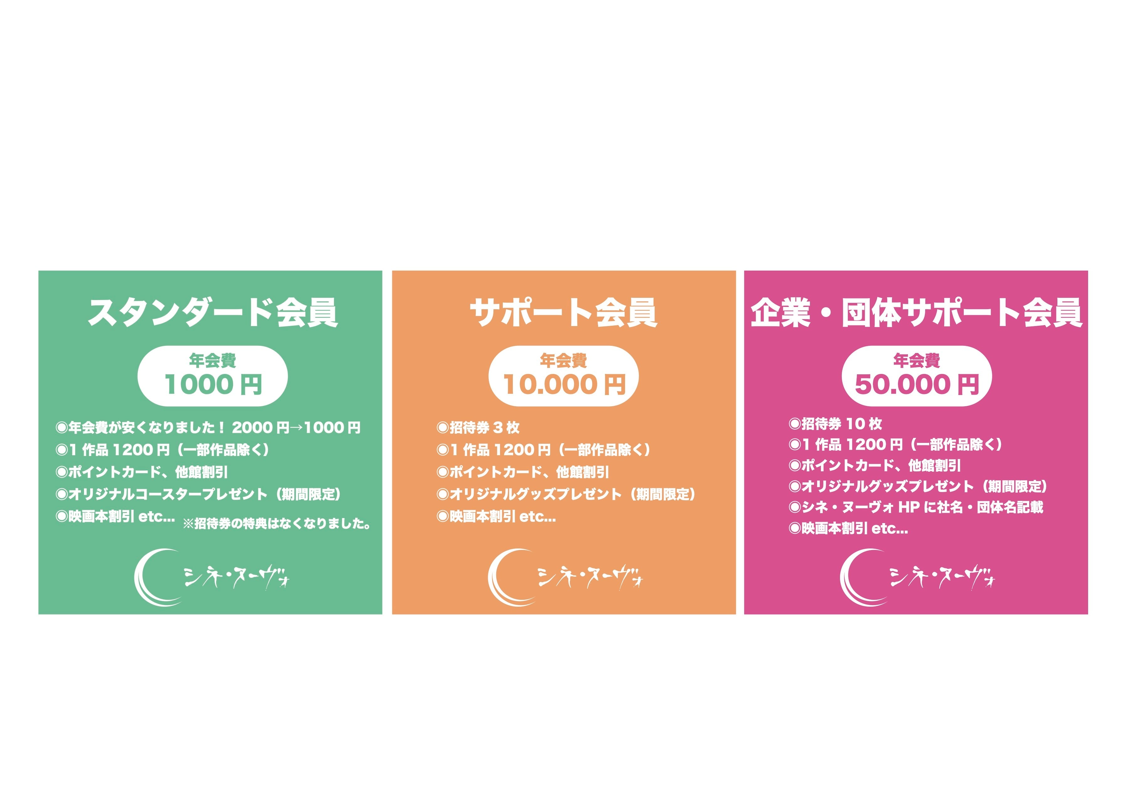 2025年8月1日よりシネ・ヌーヴォ・シネクラブ会員制度を改訂・追加いたします。より加入しやすくなった【スタンダード会員】に加えて当館への継続的なご支援・サポートとなります【サポート会員】【企業・団体サポート会員】の3種類となります。多様で豊かな映画の上映を支えていただきたく、ぜひご加入くださいますよう、どうぞよろしくお願いいたします。